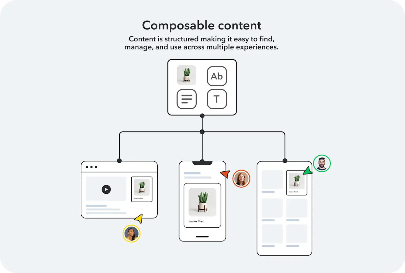 Gracias al modelado de contenido estructurado, puedes crear elementos reutilizables que se adaptan a múltiples experiencias digitales, reduciendo tiempos de desarrollo y generando consistencia de marca.